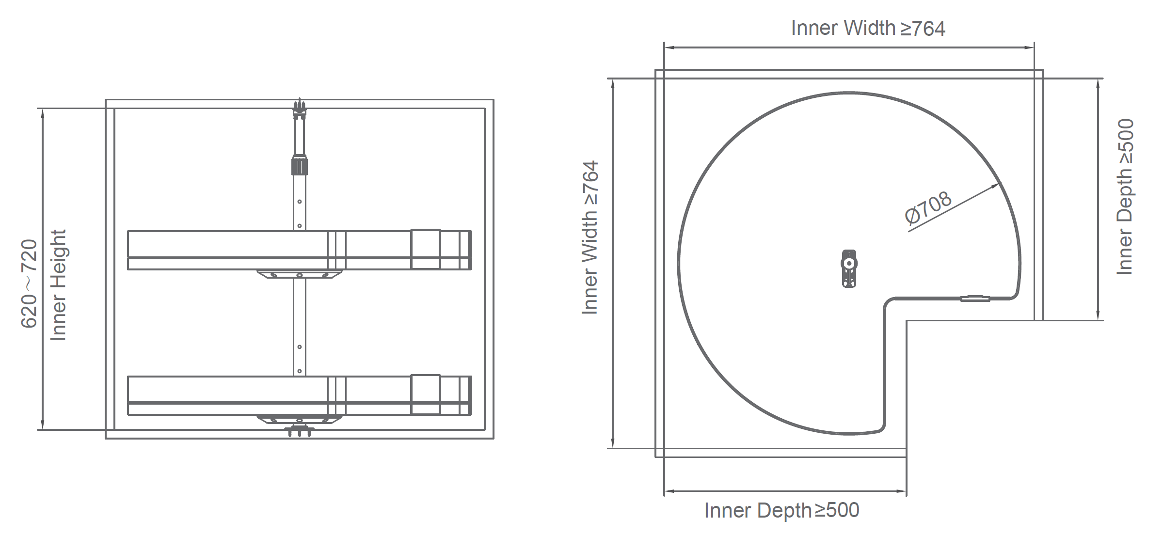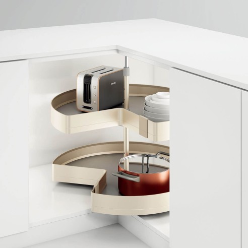 Height adjustable 180° Revolving Shelf with non slip mat allowing for easy access of storing kitchen items.