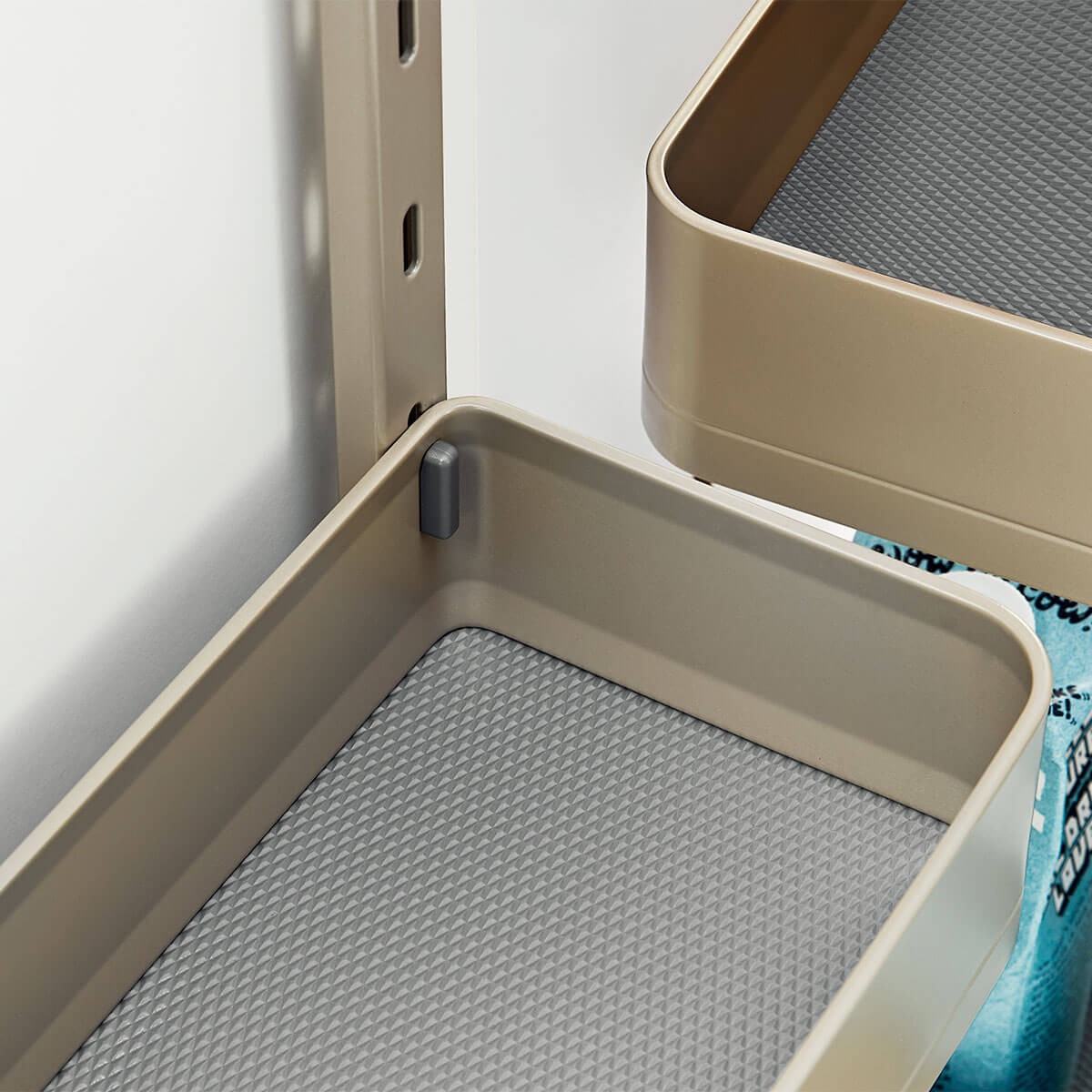 Synchronized damping design of upper and bottom guide rails, running smooth and stable. Mounting height of basket can be adjusted flexibly. Unique 180° rotatable structure.Please note that pre-order products will be delivered at a later date.