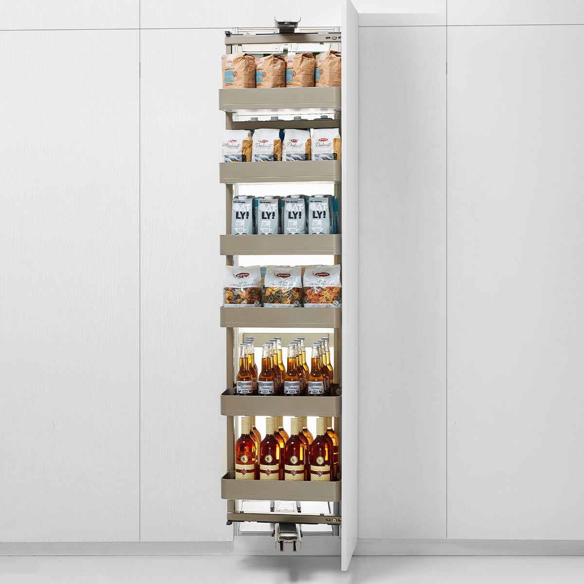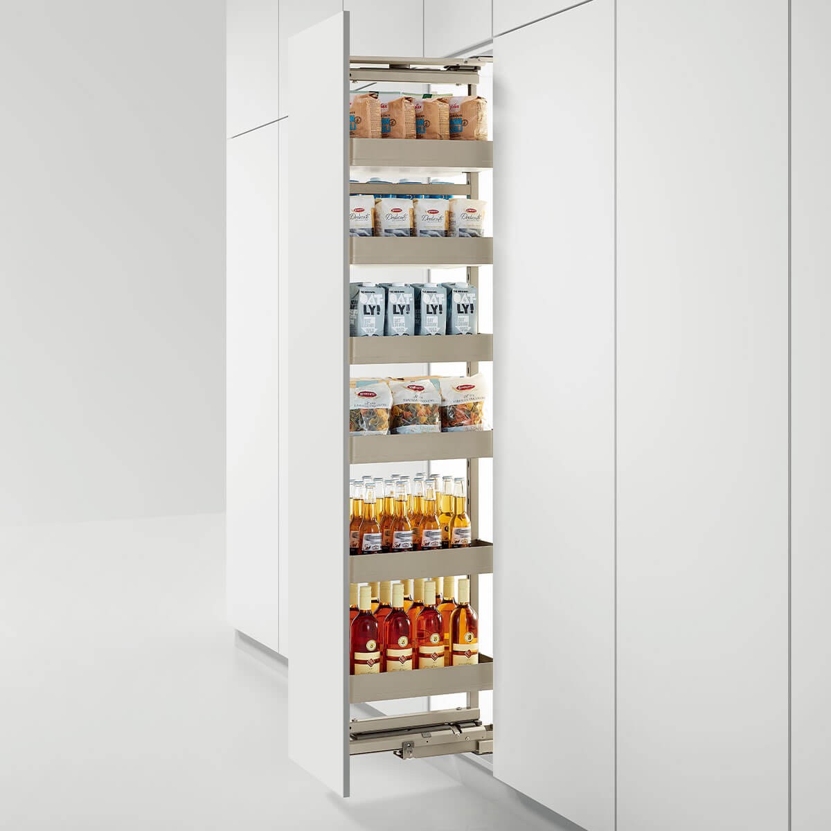 A complete pull-out Tall storage with super load-bearing damping, fully pull-out guide rail. Convenient to fetch items, suitable to used with embedded refrigerator in high cabinet.Please note that pre-order products will be delivered at a later date.