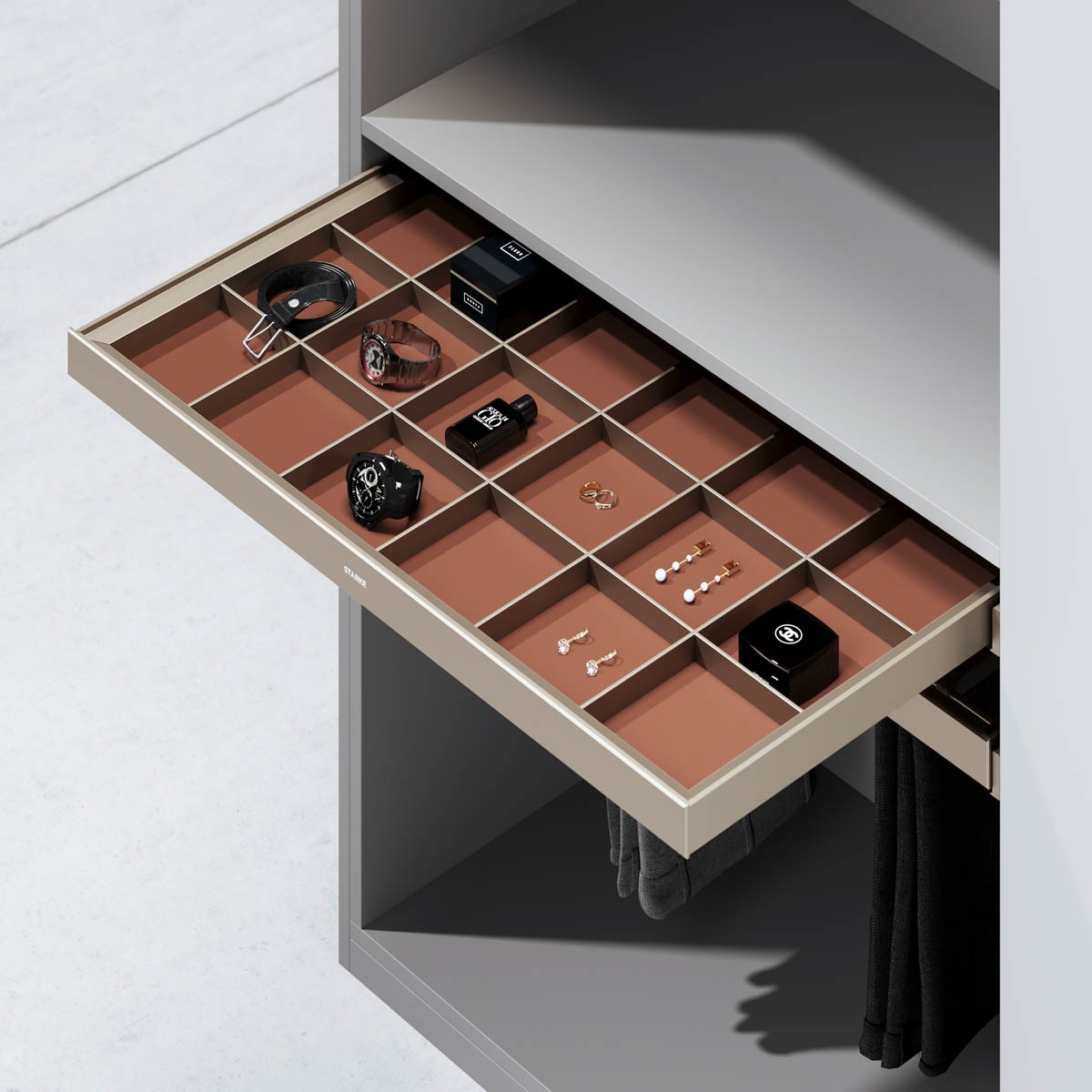 The Maverick High-end Soft Close Decorations Shelf blends luxury with functionality, providing a refined showcase for your most treasured items. Featuring a soft close mechanism for quiet operation, this shelf offers customizable options and exquisite design details to elevate your wardrobe's aesthetic.