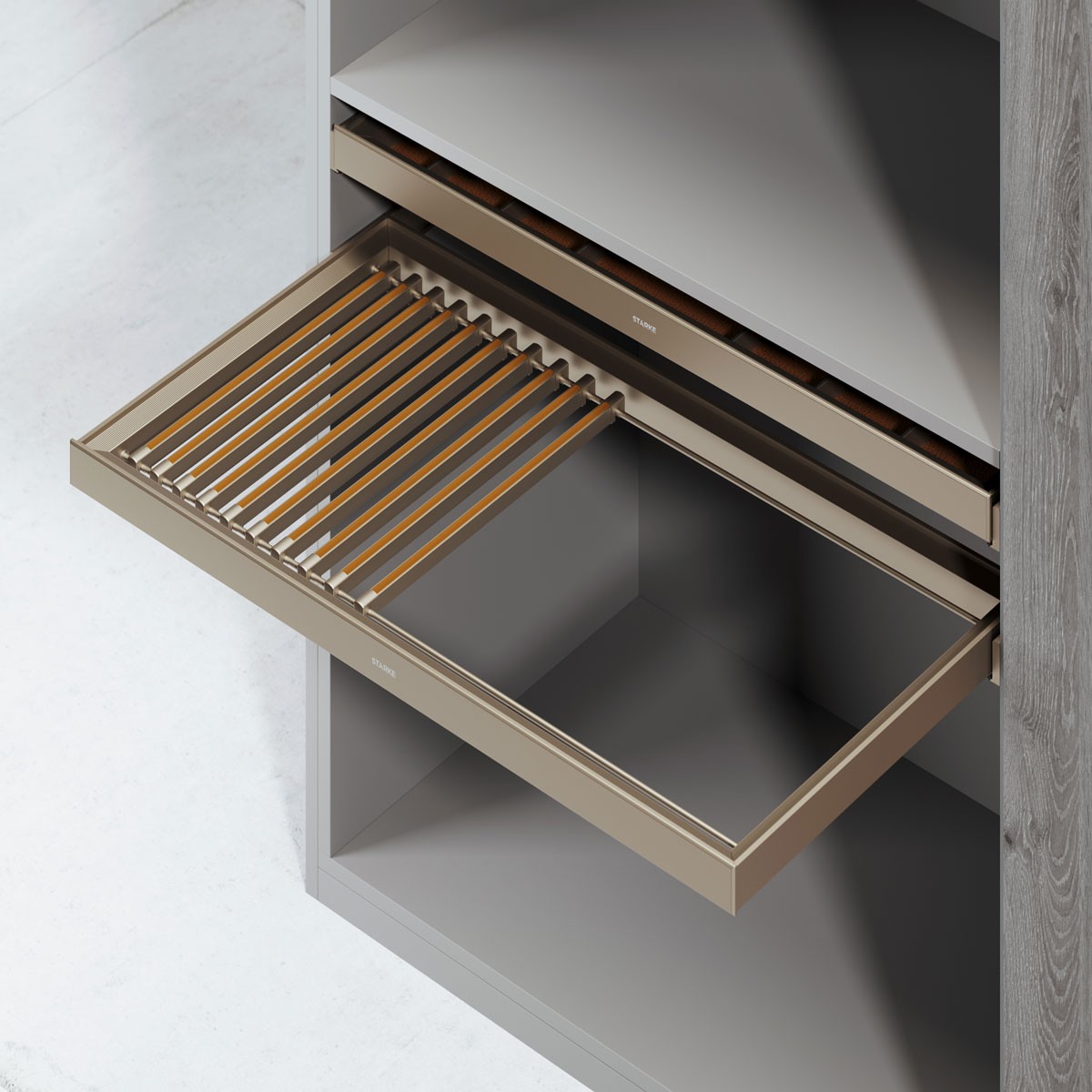 Engineered with premium materials and a soft-close mechanism, this rack ensures smooth, quiet storage for all your trousers.